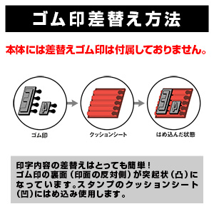 - 差し替えゴム印とインクは別売りです。本体のみでは使用できませんのでご注意ください。